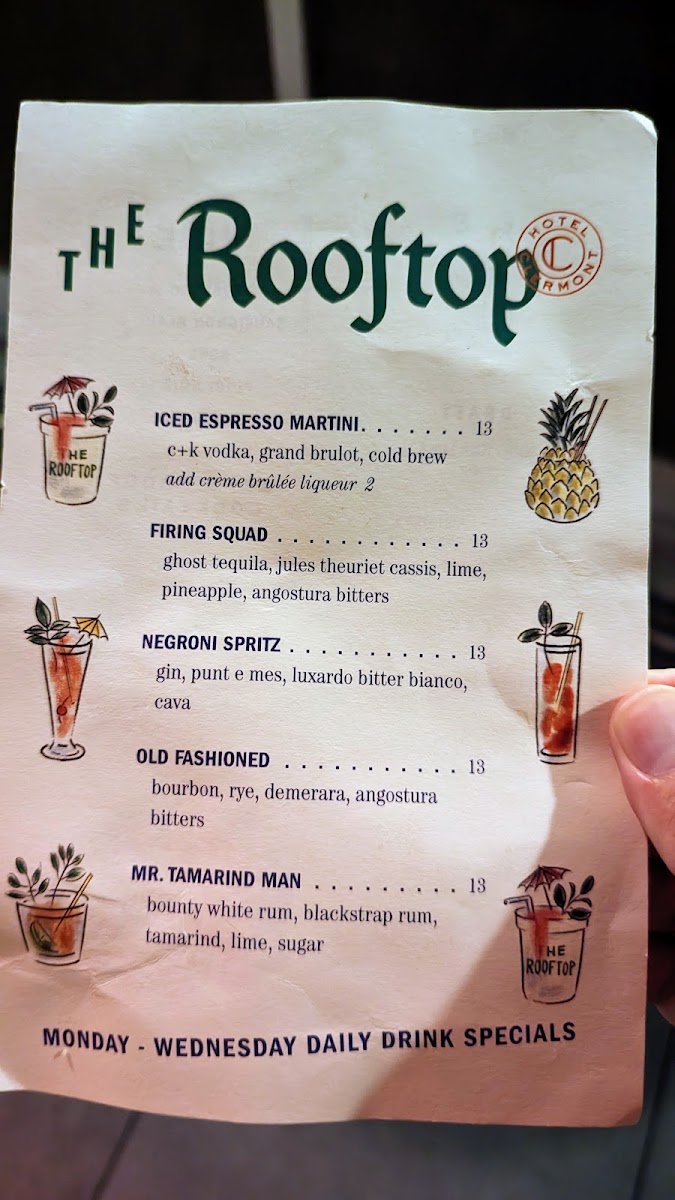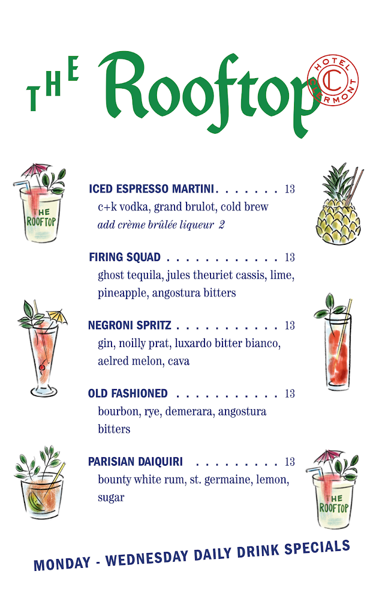 The Rooftop at Clermont offers a thoughtfully curated menu that complements its relaxed, open-air ambiance. The selection leans into casual bites and refreshing drinks, perfect for unwinding while taking in sweeping city views. Whether you're stopping by for a laid-back evening with friends or a quiet moment watching the skyline, the menu balances familiar flavors with a touch of craft sophistication.